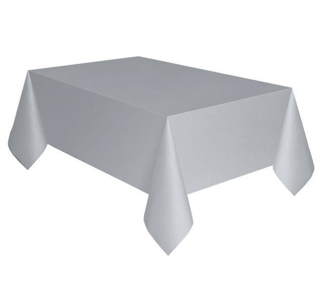 Silver Rectangular Plastic Table Cover 54in x 108in